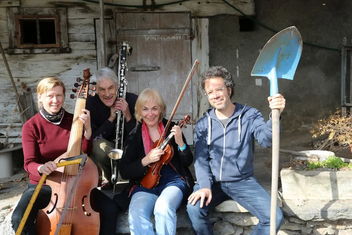 … ist ein Programm mit Kompositionen des Musikers Reto Senn, das sich stilistisch zwischen Volksmusik, Jazz und improvisierter Musik bewegt. Das Quartett mit Gambe, Geige, Harmonium, Bassklarinette und Gesang bringt sicher einige musikalische Überraschungen mit. Es wird gejodelt und erzählt.